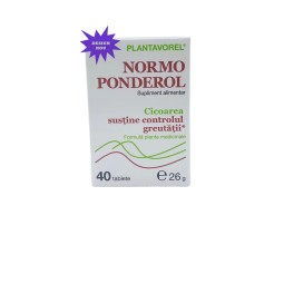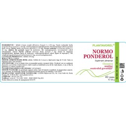 NORMOPONDEROL® este un supliment alimentar pe bază de plante medicinale și extracte naturale, care sustine controlul greutății si promoveaza sanatatea generala a organismului. Formula sa complexă include o combinatie de ingrediente active din plante medicinale, cu beneficii documentate pentru stimularea digestiei, eliminarea toxinelor, cu elect benefic asupra valorilor colesterolului si controlul greutatii. Se recomanda asocierea cu o dieta hipocalorica si exercitii fizice regulate.